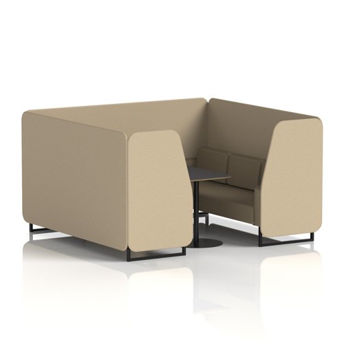 Brixworth 2 Seater Booth With Black Legs And Black Table With Black Leg In Main Line Flax Fabric - Upminster Panels And Bank Sofa