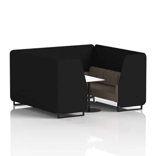 Brixworth 2 Seater Booth With Black Legs And White Table With Black Leg In X2 Fabric - Diameter Panels And Theory Sofa