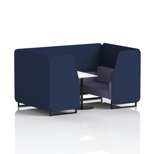 Brixworth 2 Seater Booth With Black Legs And White Table With Black Leg In Synergy Fabric - Alike Panels And Order Sofa
