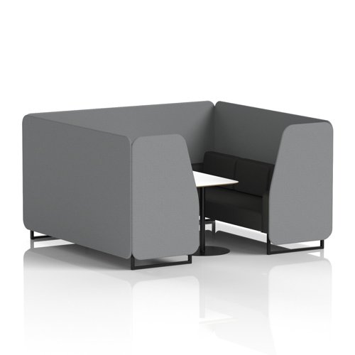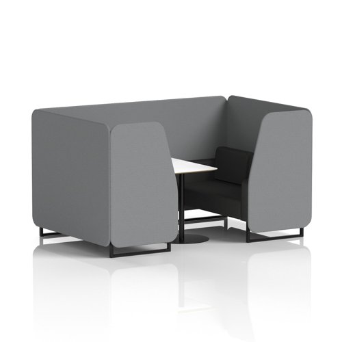Brixworth 2 Seater Booth With Black Legs And White Table With Black Leg In Synergy Fabric - Partner Panels And Mix Sofa