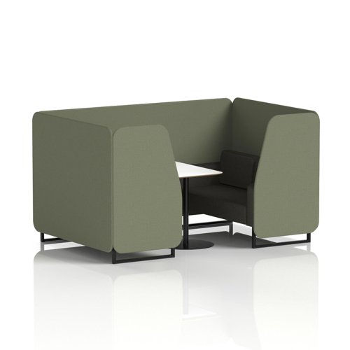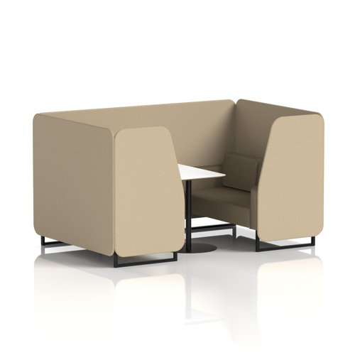 Brixworth 4 Seater Booth With Black Legs And White Table With Black Leg In Rivet Fabric - Crucible Panels And Prime Sofa