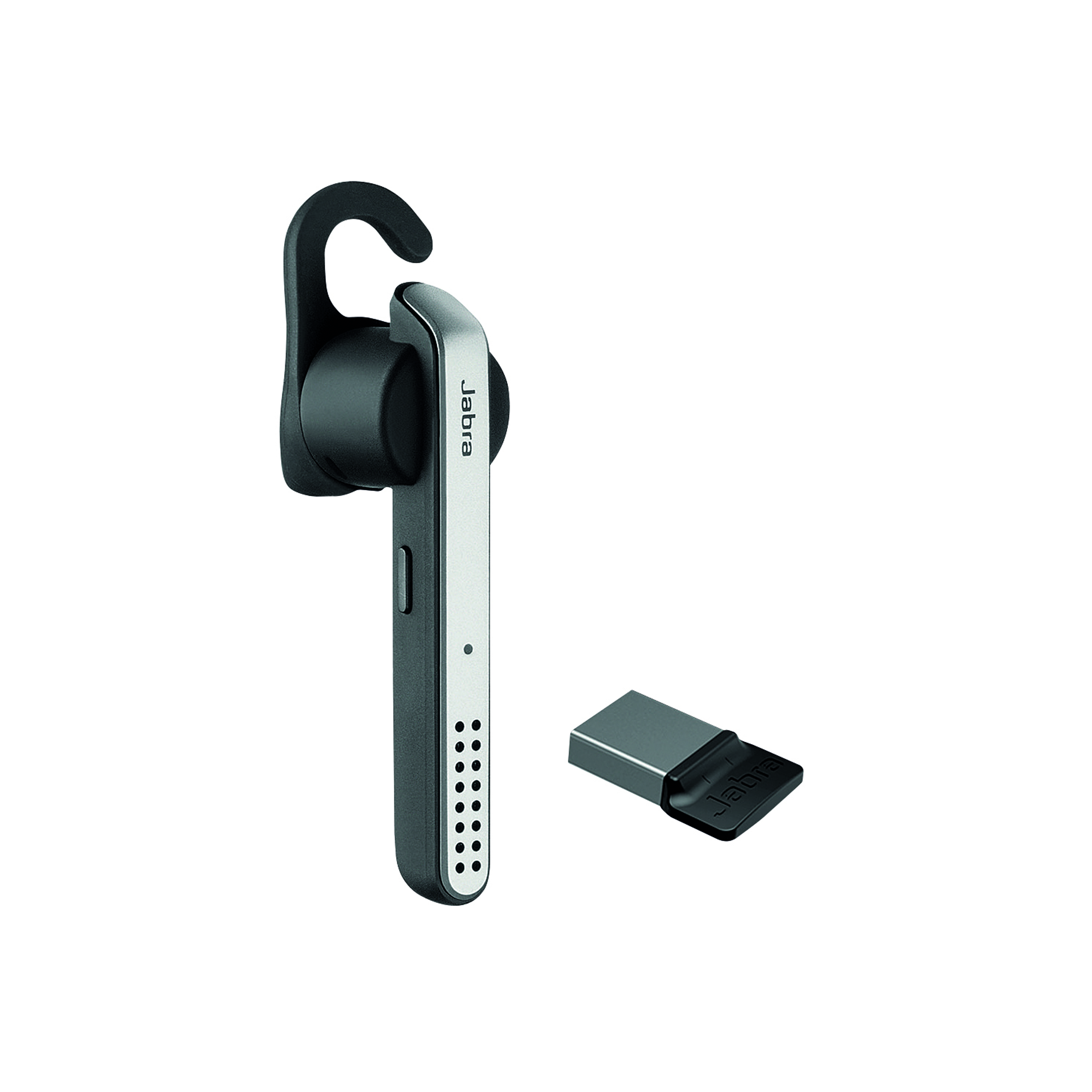 Jabra Stealth headset, 2 sets of ultimate comfort eargels, ear hooks, quick start guide, warranty leaflet and register paper, USB dongle