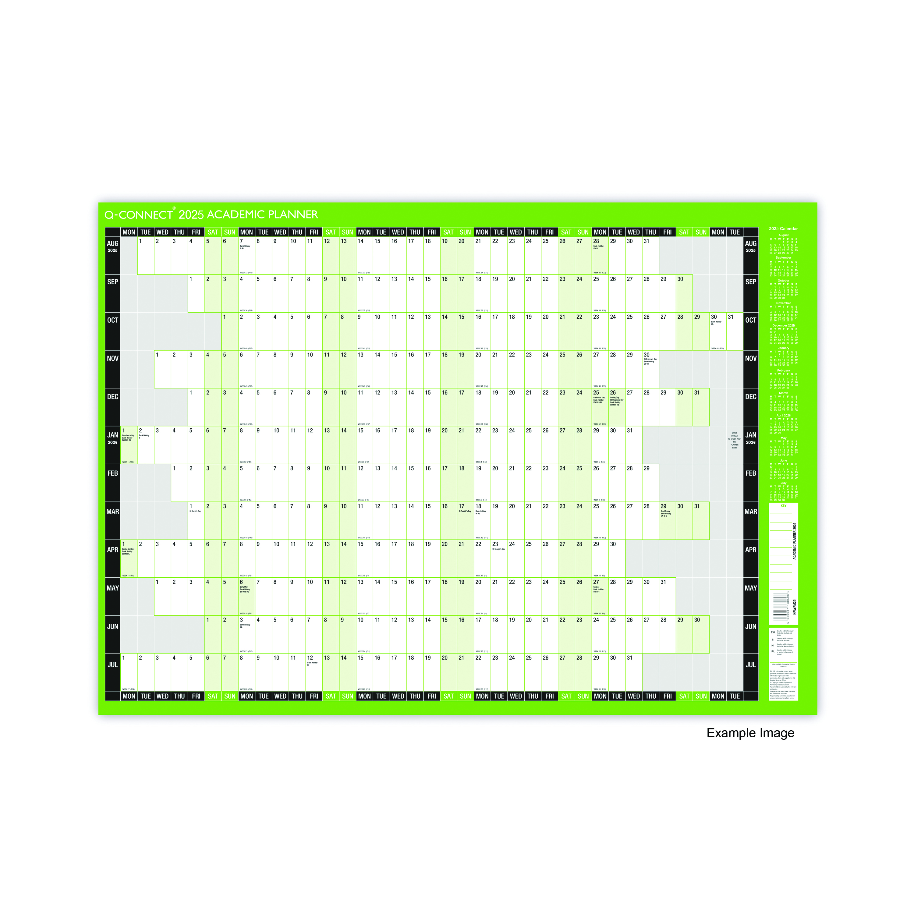 This handy Q-Connect academic year planner runs from August to July and is perfect for keeping on track of all deadlines, assignments, meetings, lectures and holidays. The write on, wipe off laminated surface allows you to easily make and change plans as needed. This mounted planner also includes UK and EIRE holidays, and measures W855 x H610mm.
